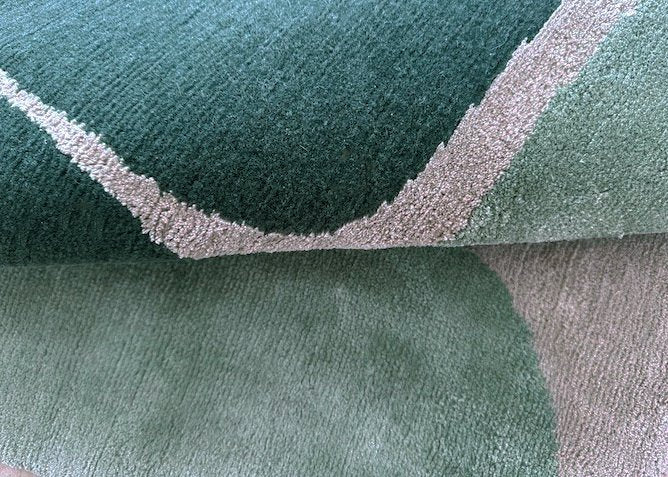 All rugs are handmade and may be available in wool, silk, allo, mohair, nylon, bamboo silk, viscose, and linen.