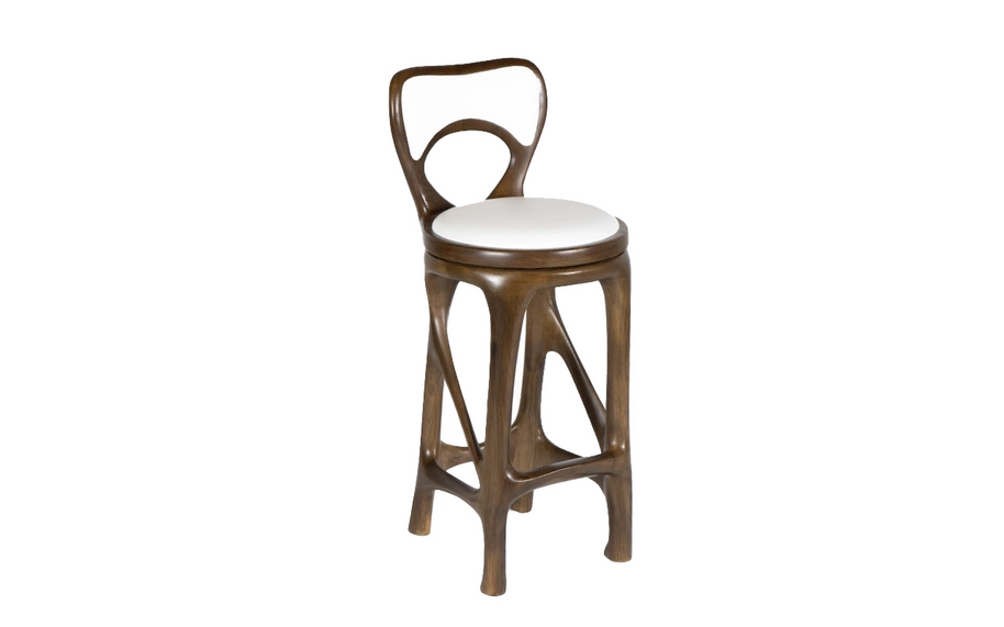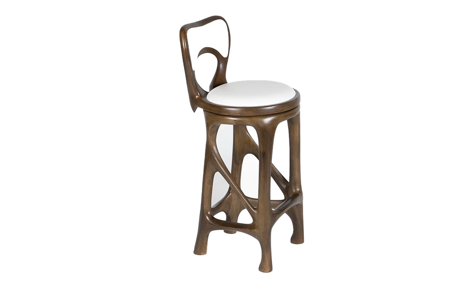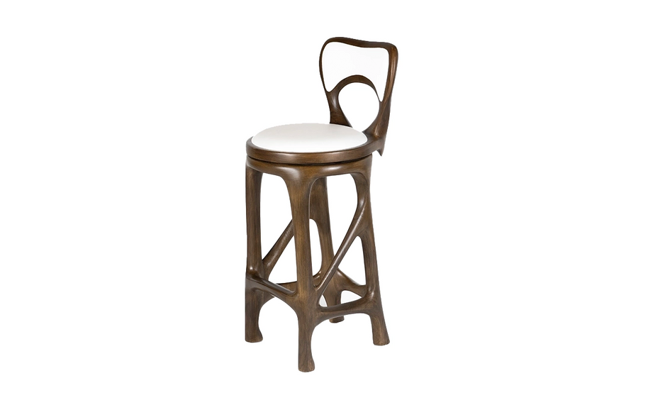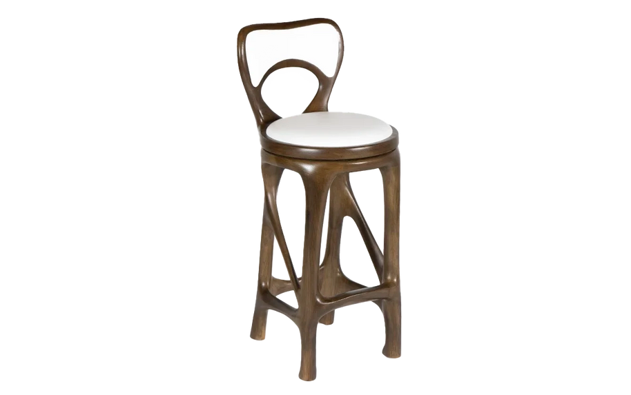 The Agna Swing Bar Stool is a statement of elegance and craftsmanship, designed to seamlessly blend organic fluidity with structural integrity. Handcrafted in Graphite Walnut, its sculptural frame features intricate curves and a distinctive open-back design, offering both aesthetic appeal and ergonomic support. The gently contoured seat ensures comfort, making it perfect for sophisticated interiors, from modern kitchens to high-end bars.