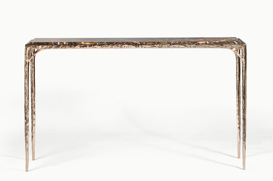 The "Amsterdam" Console, hand-crafted in Southern California, is made of solid hand-cast bronze.