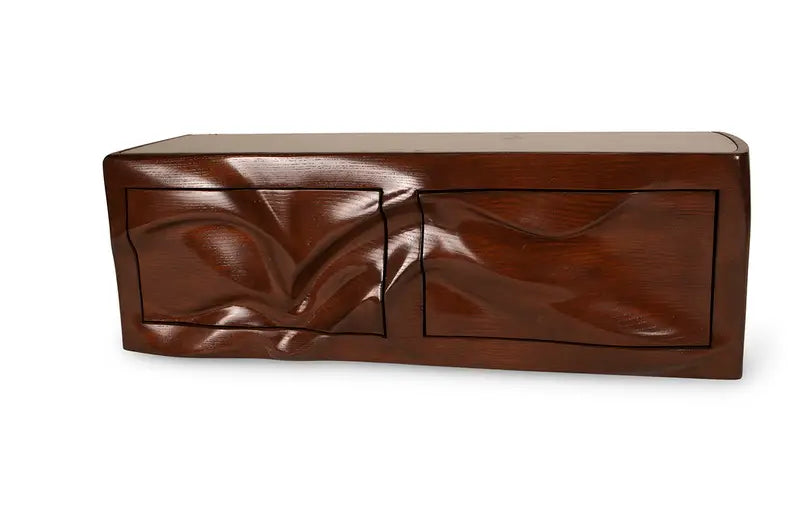 The Beauregard Wall-Mounted Cabinet is a striking blend of fluid artistry and functional design. Its sculpted façade, reminiscent of organic movement, gives the piece a dynamic, almost liquid appearance. The carefully carved contours create a sense of motion, transforming a traditional cabinet into a sculptural focal point.