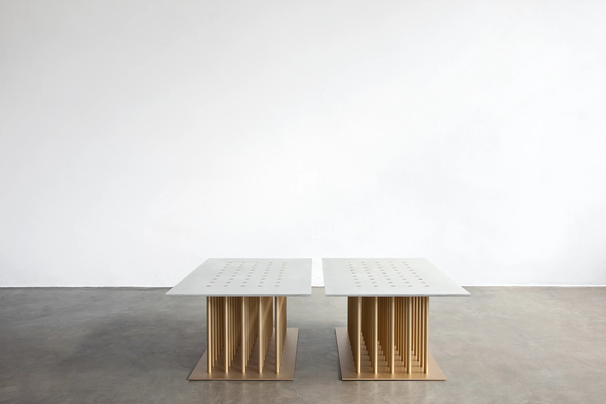 • Concrete impasto applied by hand. Available in light, medium, dark, and black shades. Anti-stain treated. • Pipes, grids, and plates, available in six matching finishes.
