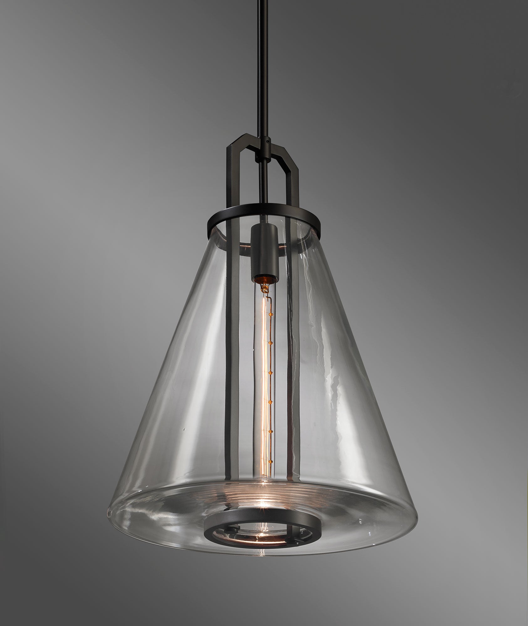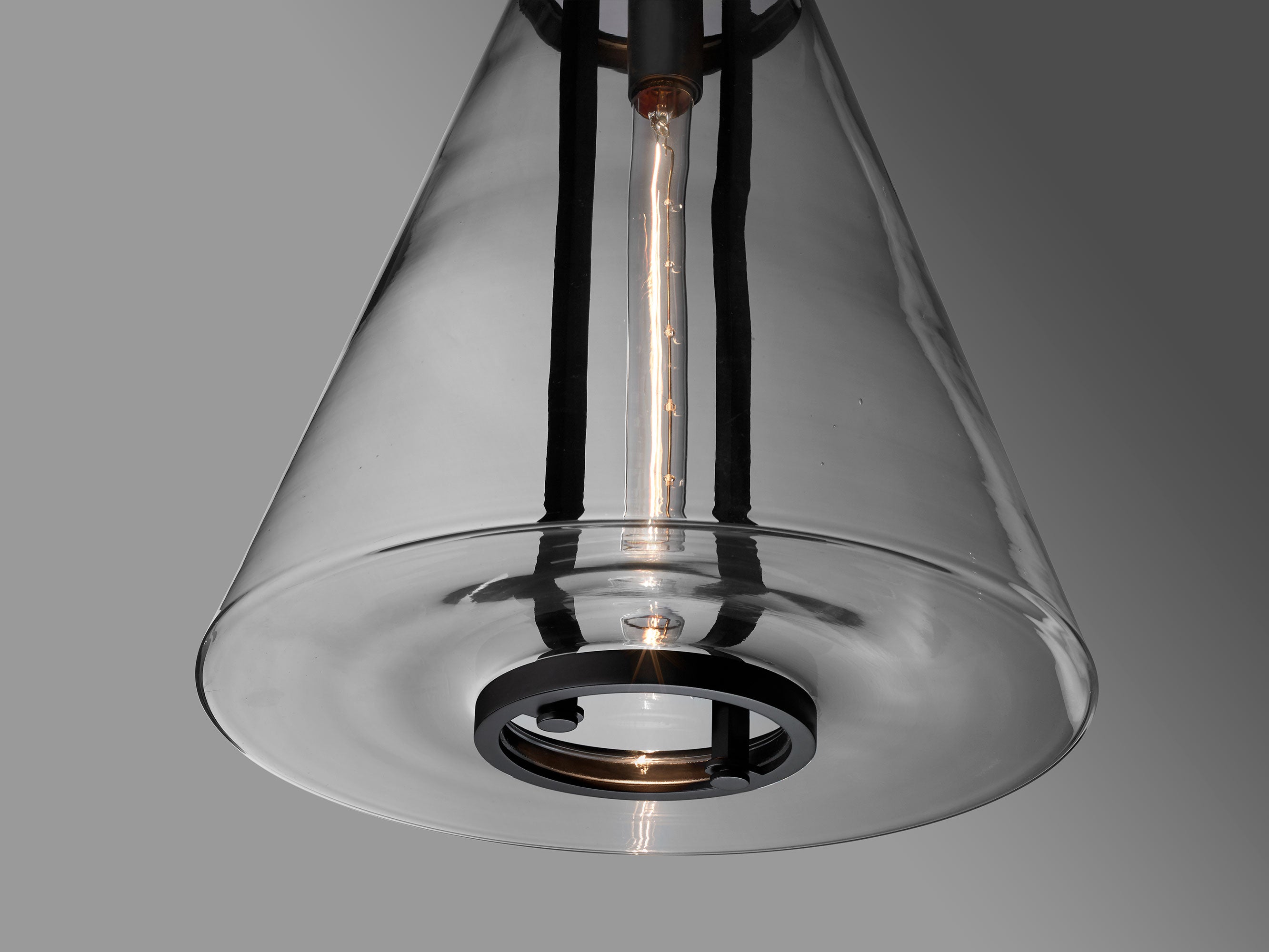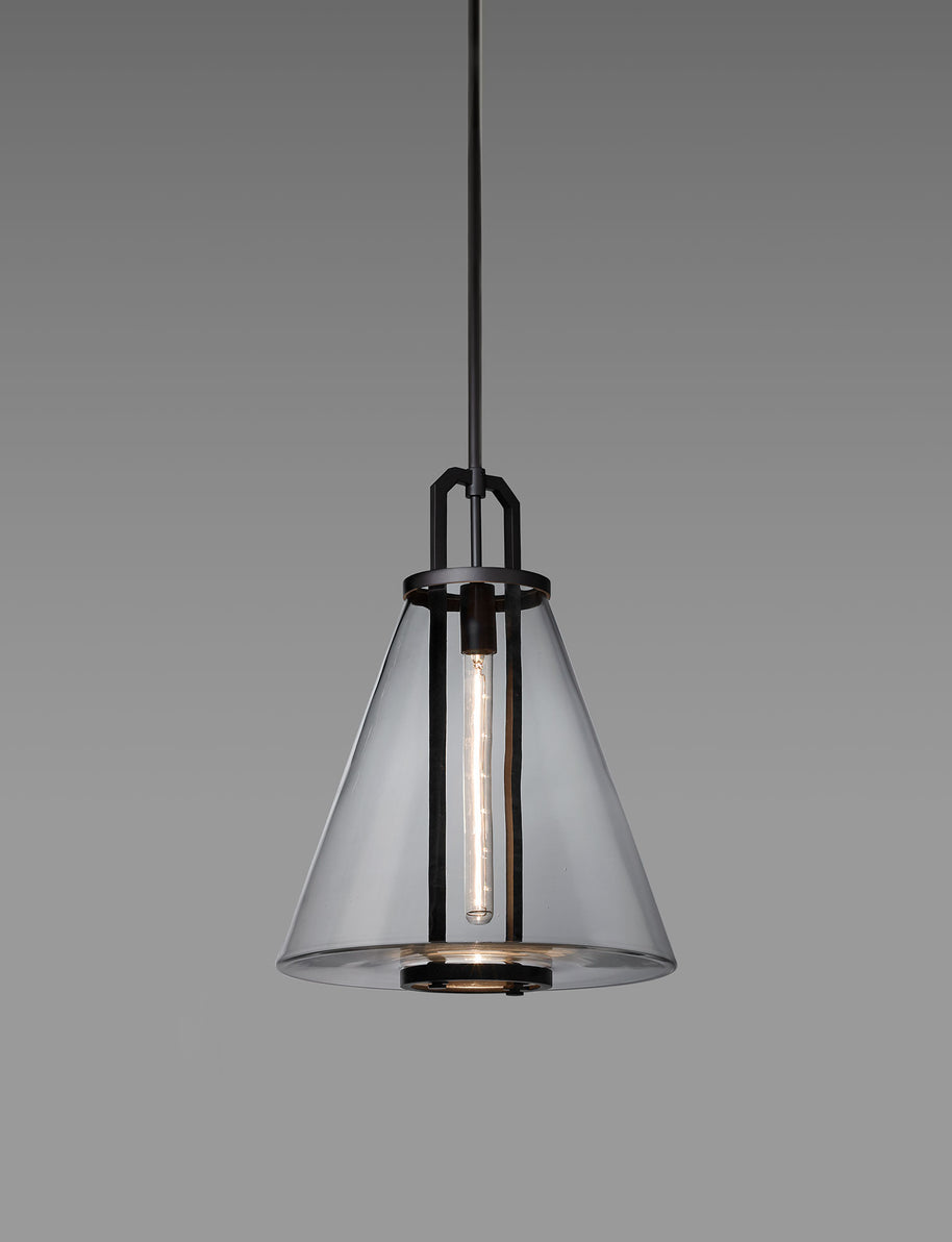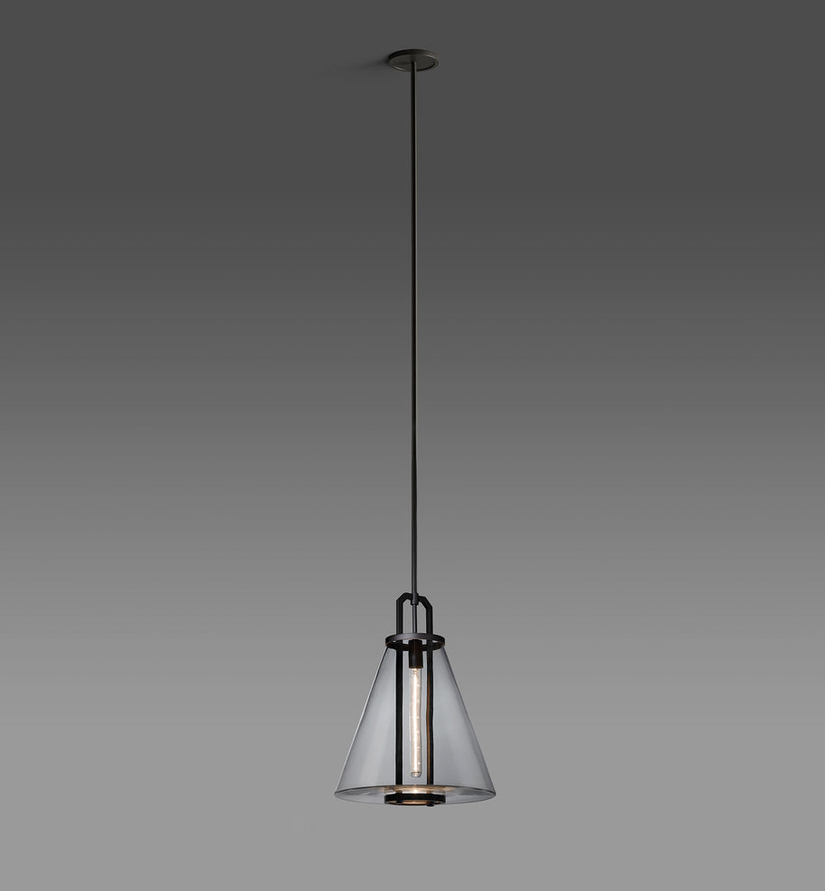 The Bouillant Funnel Pendant is machined by hand from solid brass. All parts are hand polished and patina’d. The Funnel blown glass is secured by machined brass parts.