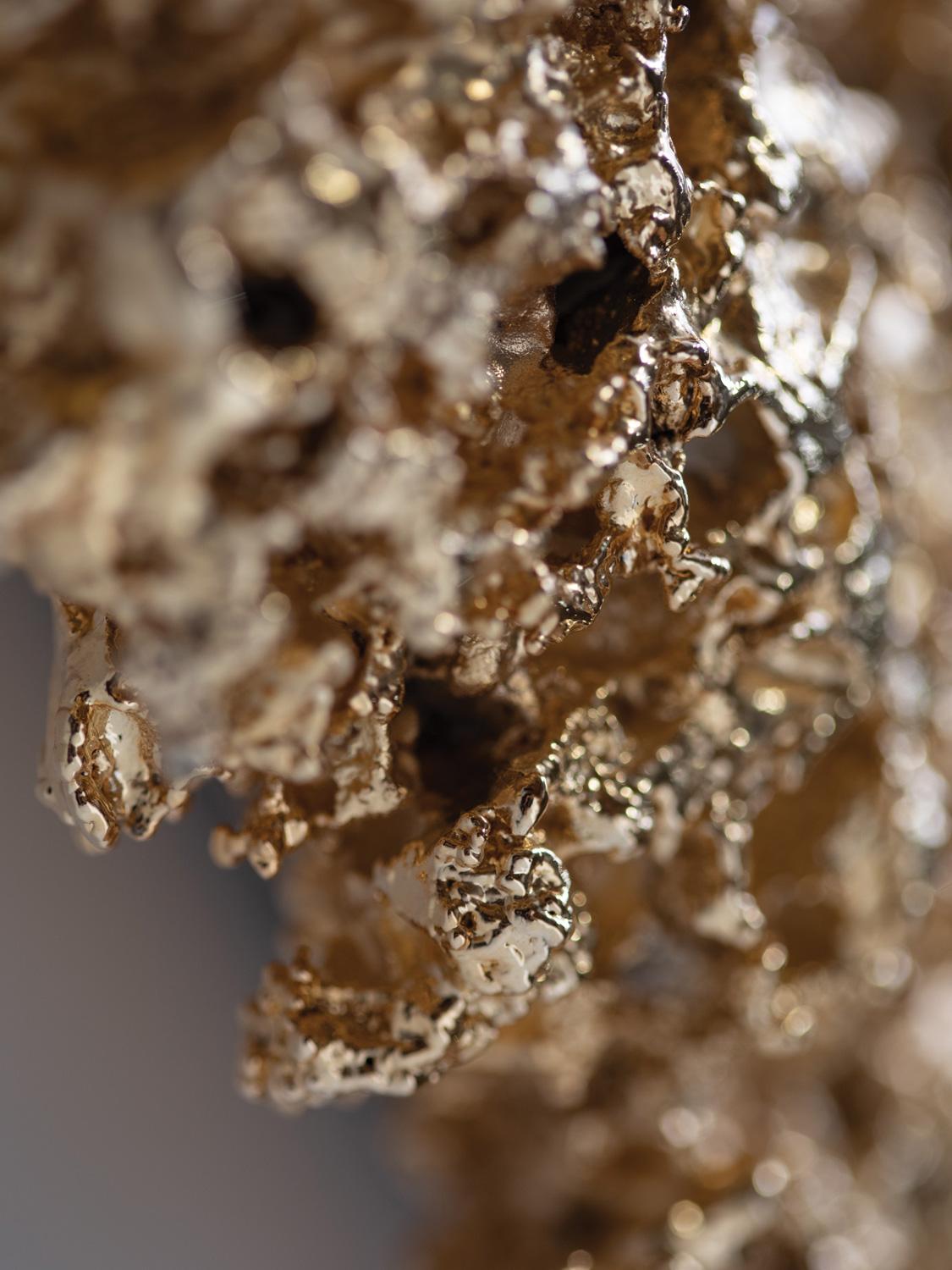 The "Brooch" Mirror, finished in 14K gold, hand-crafted in Southern California, is our vision of "Organic Luxury", our iconic debut line inspired by nature and opulence. Each piece is uniquely sculpted. It's aesthetic will command attention in any room.