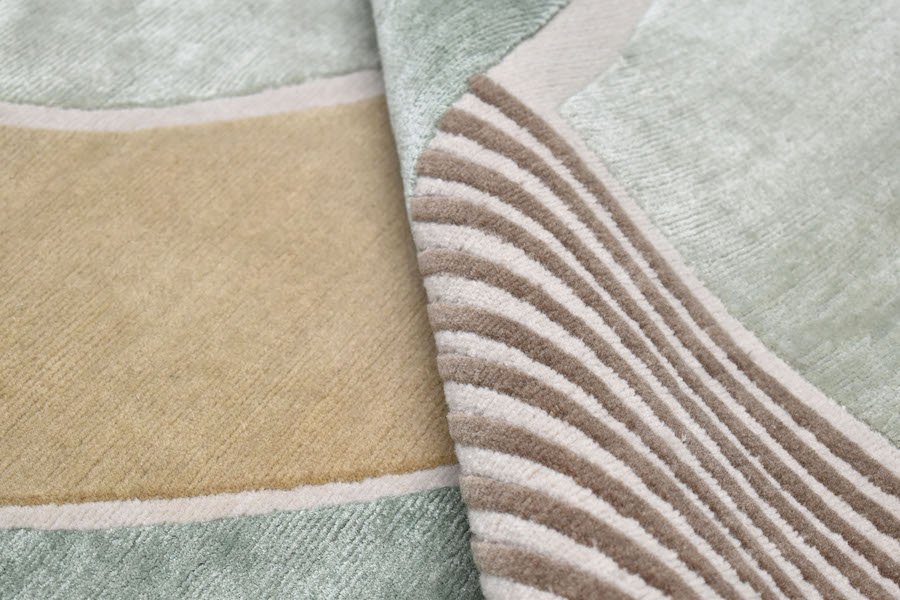 All rugs are handmade and may be available in wool, silk, allo, mohair, nylon, bamboo silk, viscose, and linen.