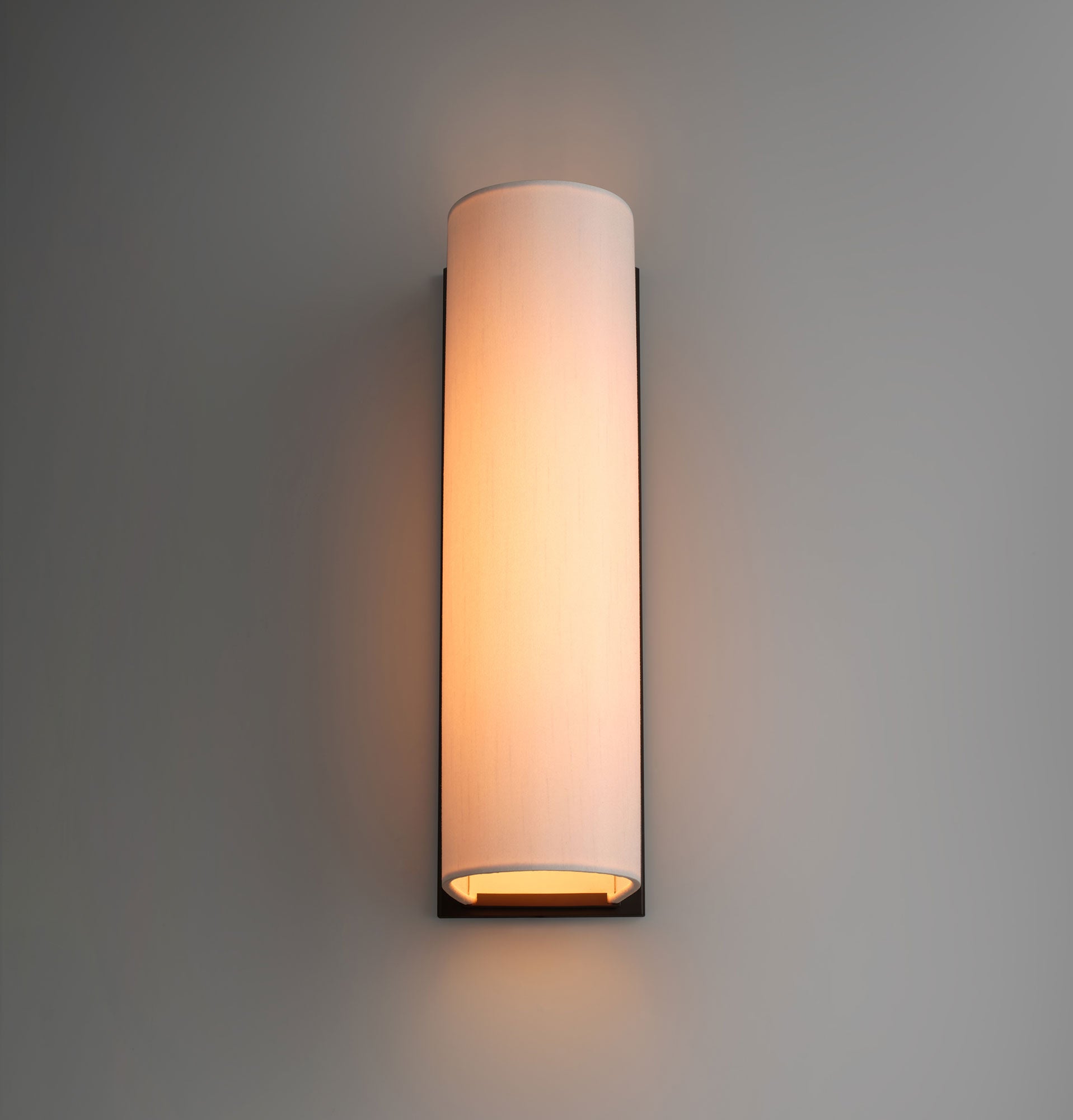 The Dessay Sconce is machined from solid brass. All parts are hand polished and patina’d. The shade is made from ivory silk.
