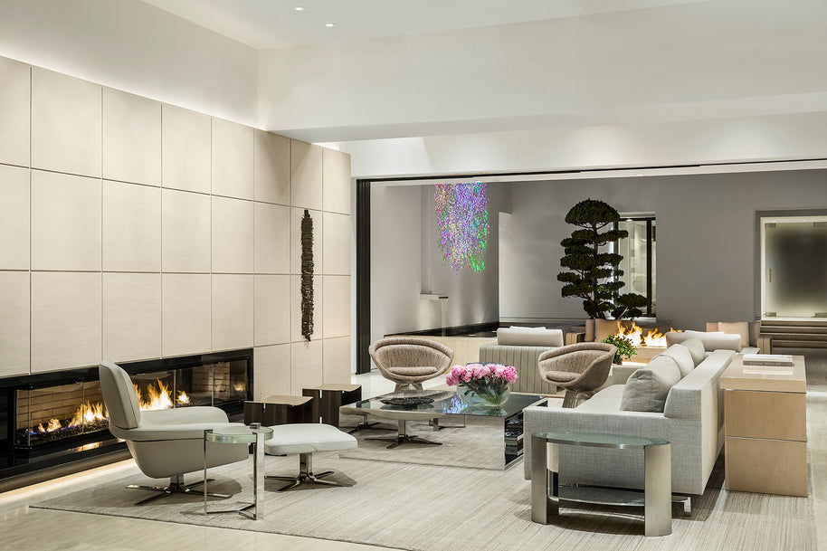 The "Jewel" Round Side Table is hand-crafted in Southern California. The hand-cast glass top is mounted like a jewelry setting.