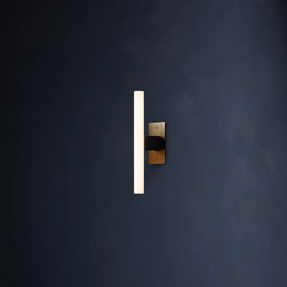LIGHT IN ITS PUREST FORM, THIS SMALL BRASS WALL LIGHT MAKES THE TECHNICAL INTRICACIES INVISIBLE BY REDUCING IT TO A SIMPLE FIXTURE. NEA CONSIST OF A 300 MM GLASS TUBE CONTAINING A DIMMABLE LED IS MOUNTED ONTO THE WALL AT A SINGLE POINT USING HAND-CRAFTED BRASS PLATE FIXTURES.