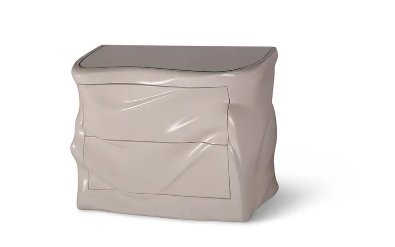 The Noor nightstand is a one-of-a-kind piece designed specifically for modern and contemporary bedrooms. What sets it apart is the unique wave design on the nightstand, which adds a distinctive and eye-catching effect to the overall look of the nightstand. It is available in two different options – with either two drawers or three drawers – providing ample storage space for your bedroom essentials. Additionally, the Noor nightstand can be customized to fit your specific requirements in terms of size and finish. With its modern design and customizable options, the Noor nightstand is a perfect addition to enhance the style and functionality of any modern or contemporary bedroom.