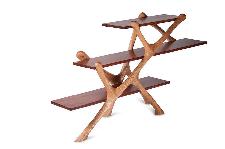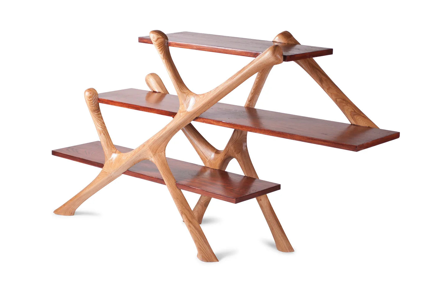 The Ziggurat bookcase is a one-of-a-kind contemporary piece of furniture that offers a unique look for any space. Its structure and shelves can be made from a variety of materials, allowing for customization to suit individual preferences and interior design styles. The design of the bookcase resembles tree leaves, providing a natural and organic aesthetic. It is available in different sizes, making it versatile for various room sizes and storage needs. Additionally, the bookcase can be finished with custom finishes, allowing for further personalization and integration into existing decor. Overall, the Ziggurat bookcase offers a modern and stylish storage solution that adds a touch of sophistication to any room.